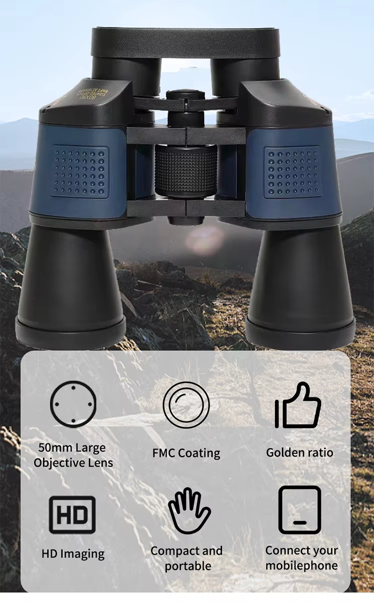 Large Binoculars 7X50 High Definition Telescope Low Light Night Vision Red Film Telescope for Bird Watching